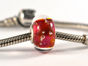 These beads have a sterling silver core and are made to fit European charm bracelets. Sizes vary, please check before purchasing.