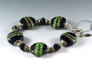 Sterling Silver Lampwork Bracelet - Blue and Purple