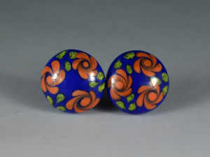 Cobalt blue with orange flowers - Lampwork Stud Earrings