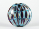 This bead has a black core, encased in clear glass with blue and purple design.