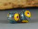 Matching pair of lampwork beads, marigold yellow murrini and fine black lines on multicoloured base They measure approx 13.5mm x 12.5mm.
