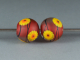 Matching Pair - Red with Yellow & Red Murrini Lampwork Beads