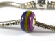 This 3 tone bead is purple, lime green and fuchsia. It has a sterling silver core (not glued in rivets) and is made to fit most European charm bracelets. It measures 13.3 x 8.3mm, hole = 4.3mm.