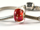 This bead has a pink/orange core encased in clear glass with fine silver droplets. It has a sterling silver core (not glued in rivets) and is made to fit most European charm bracelets. It measures 15 x 9.2mm, hole = 4.3mm.